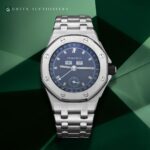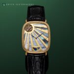 Exceptional platinum and diamond-set band and bow lapel watch.