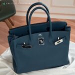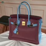 Hermès Limited Edition Club 35 white and light grey Clemence leather separated by 2 lines of lizard with palladium hardware.