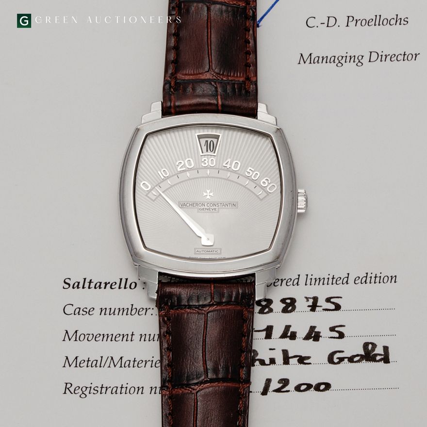 Hermes Birkin Club 35 Limited EdtionEstimate: €6,000 - €10,000SOLD €22,860 incl. Buyer’s Premium Hermes Birkin 30 ColvertEstimate: €5,000 - €10,000SOLD €11,430 incl. Buyer’s Premium Hermes HSS Birkin 30 Chevre MysoreEstimate: €6,000 - €9,000SOLD €12,065 incl. Buyer’s Premium Chanel Medium CC Baby Pink Classic Double FlapEstimate: €1,500 - €3,000SOLD €3,048 incl. Buyer’s Premium Cartier Santos 100 enamel dial Case #1/20 circa 2008Estimate: €30,000 - €60,000SOLD €48,260 incl. Buyer’s Premium Rolex Daytona Paul Newman bracelet watch circa 1968Estimate: €120,000 - €250,000SOLD €152,400 incl. Buyer’s Premium Vacheron Constantin Prestige de la France wristwatch circa 1975Estimate: €10,000 - €20,000SOLD €21,590 incl. Buyer’s Premium Vacheron Constantin Saltarello wristwatch from 1999Estimate: €30,000 - €60,000SOLD €54,610 incl. Buyer’s Premium Audemars Piguet Hong Kong Special Limited Edition from 1997Estimate: €15,000 - €30,000SOLD €34,290 incl. Buyer’s Premium Audemars Piguet tourbillon wristwatch circa 1990Estimate: €20,000 - €40,000SOLD €127,000 incl. Buyer’s Premium Patek Philippe platinum & diamonds retailed by Freccero circa 1966Estimate: €18,000 - €35,000SOLD €26,670 incl. Buyer’s Premium Cartier platinum & diamonds lapel watch circa 1910Estimate: €4,000 - €8,000SOLD €19,685 incl. Buyer’s Premium Page 1 Page 2 Page 3 Page 4 … Page 9 Next Bid from Anywhere. Download the Green Auctioneers app and bid in our auctions from your iOS or Android device.